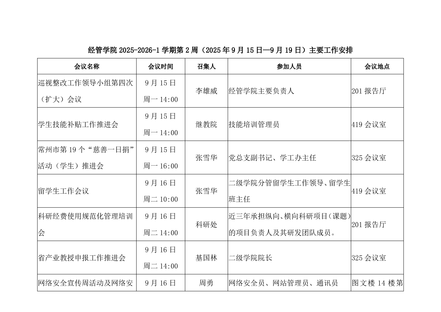 pp电子游戏平台网站2025下第2周主要工作安排