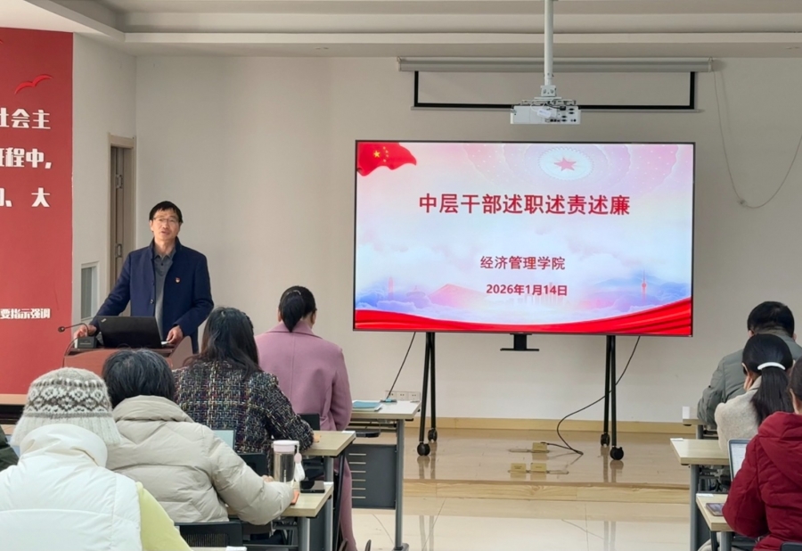 随后,学院四位党政班子成员依次作述职述责述廉报告。报告围绕2025年分管工作,全面汇报2025年工作成效、深入查摆问题不足与改进方向、详细说明廉洁自律情况,主动接受监督。述职结束后,全体教职工本着客观公正、实事求是的原则,对中层干部进行民主测评。
