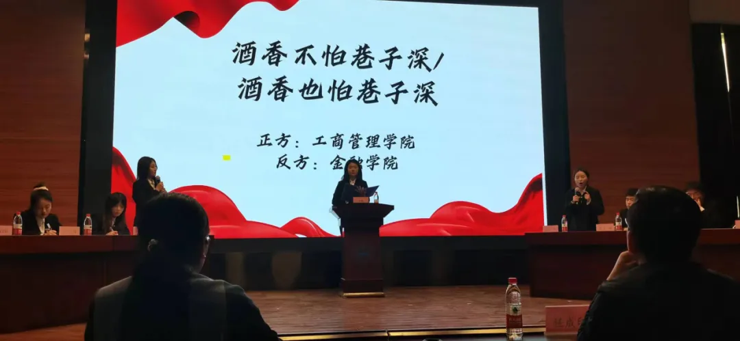 决赛中,威廉官网中国官方网站与金融学院展开了关于“酒香不怕巷子深\酒香也怕巷子深”的辩论。我方辩手团结协作,尽显工商学子的风范。尽管未能取得最终的胜利,但他们的顽强拼搏和精彩表现赢得了现场观众的热烈掌声和广泛赞誉。