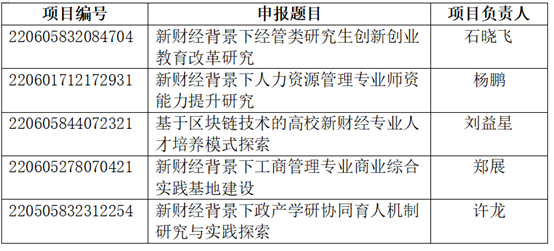 近日,教育部高等教育司公布了2022年第一批产学合作协同育人项目立项名单。威廉官网石晓飞院长主持、与广州中博教育股份有限公司合作的《新财经背景下经管类研究生创新创业教育改革研究》,杨鹏老师主持、与上海踏瑞计算机软件有限公司合作的《新财经背景下人力资源管理专业师资能力提升研究》,刘益星老师主持、与北京知链科技有限公司合作的《基于区块链技术的高校新财经专业人才培养模式探索》,郑展老师主持、与北京百智享科技有限公司合作的《新财经背景下工商管理专业商业综合实践基地建设》,许龙老师主持、与广州中博教育股份有限公司合作的《新财经背景下政产学研协同育人机制研究与实践探索》获批2022年第一批产学合作协同育人项目立项。