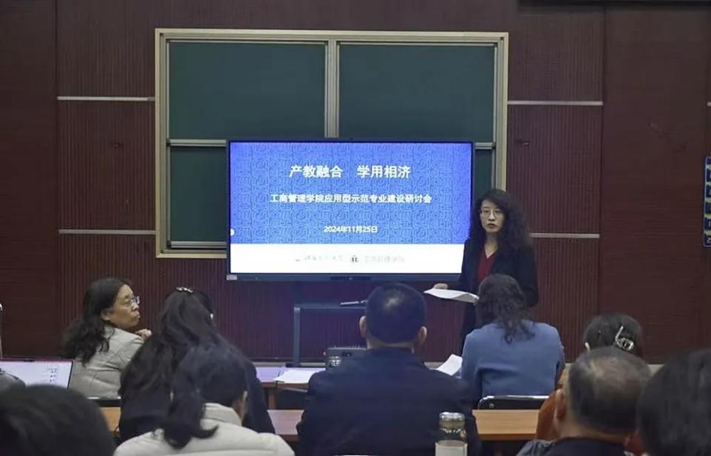 工商管理专业系主任郑展介绍了应用型示范专业建设的工作思路和现有进展。她提出未来应继续在搭建产教融合平台,构筑质量保障体系等方面持续发力,积极探索形式多样、实用性强的实践教学活动,提高学生的实践能力和职业素养。她还就应用型示范专业建设中的几大难点问题如课程共建、案例共建、师资共培、学生共育等方面与参会老师商讨。MBA教育中心执行主任桑银峰表示,在省级应用型示范专业建设过程中,应坚持做好顶层设计,确保建设工作指标与专业建设内涵的合理自洽。