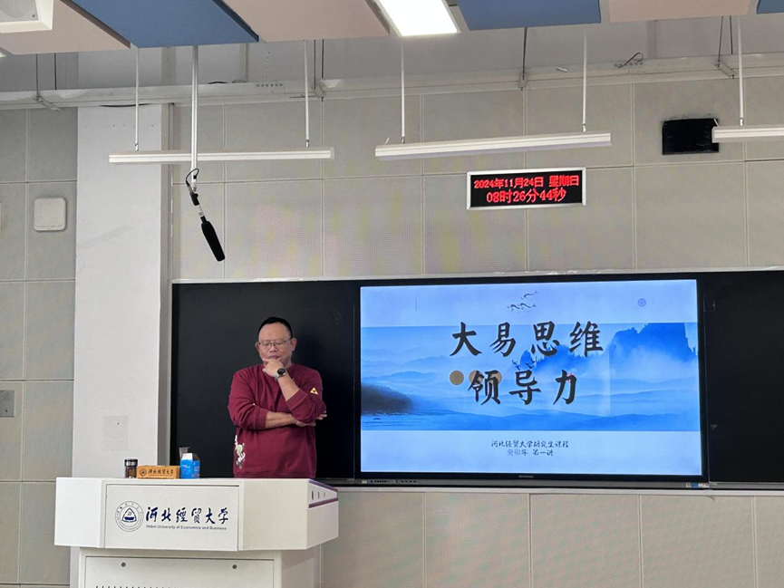 11月24日上午,威廉官网中国官方网站研究生思政教育专题之中华传统文化系列报告第三场在三教A310教室举行,河北省商业经济学会副会长、北京瑞金恒邦保险公司总裁任继东应邀作题为“大易思维和领导力”的专题报告,威廉官网中国官方网站2024级全体学术型研究生参加。