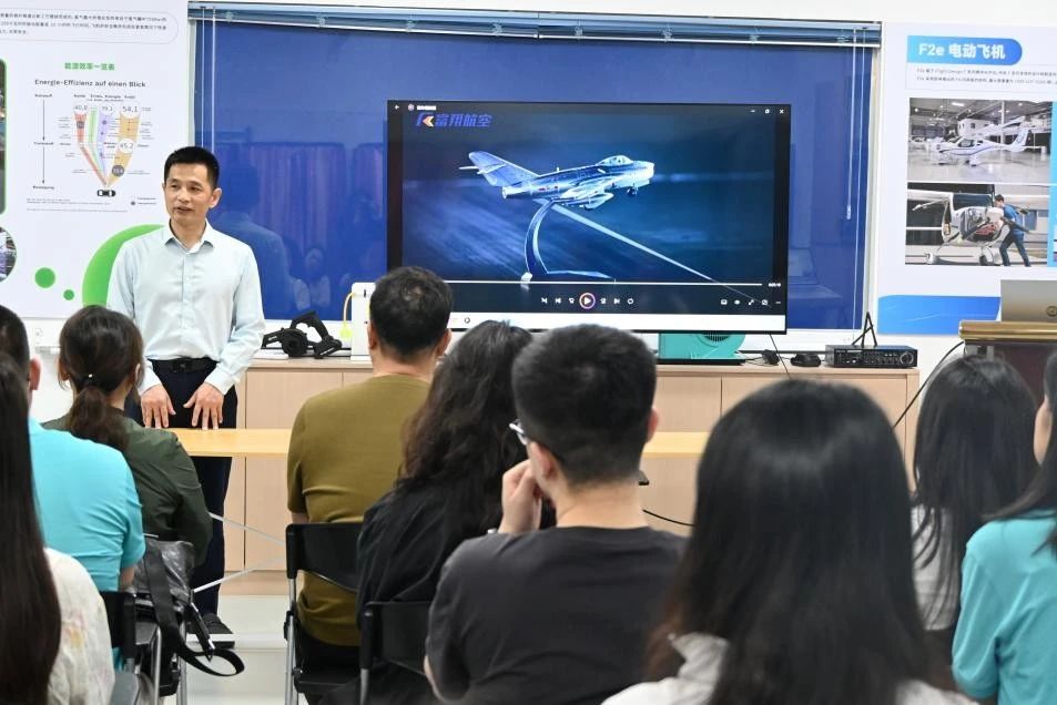 随后的座谈会上,富翔航空相关负责人与同学们进行了深入交流。他分享了航空科技的前沿技术、研发过程中的挑战与突破,以及行业未来的发展趋势,并从企业运营角度,介绍了公司的市场拓展策略、商业模式创新,以及如何应对行业竞争和市场变化。学生们就自己关心的问题积极提问,涵盖技术创新与商业转化、市场定位与营销策略、人才需求与培养等多个方面。双方围绕如何将航空科技与商业管理有效融合展开热烈讨论,现场气氛活跃。