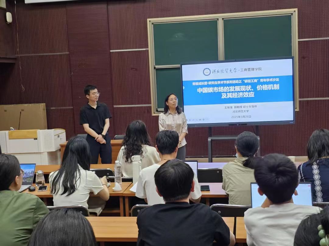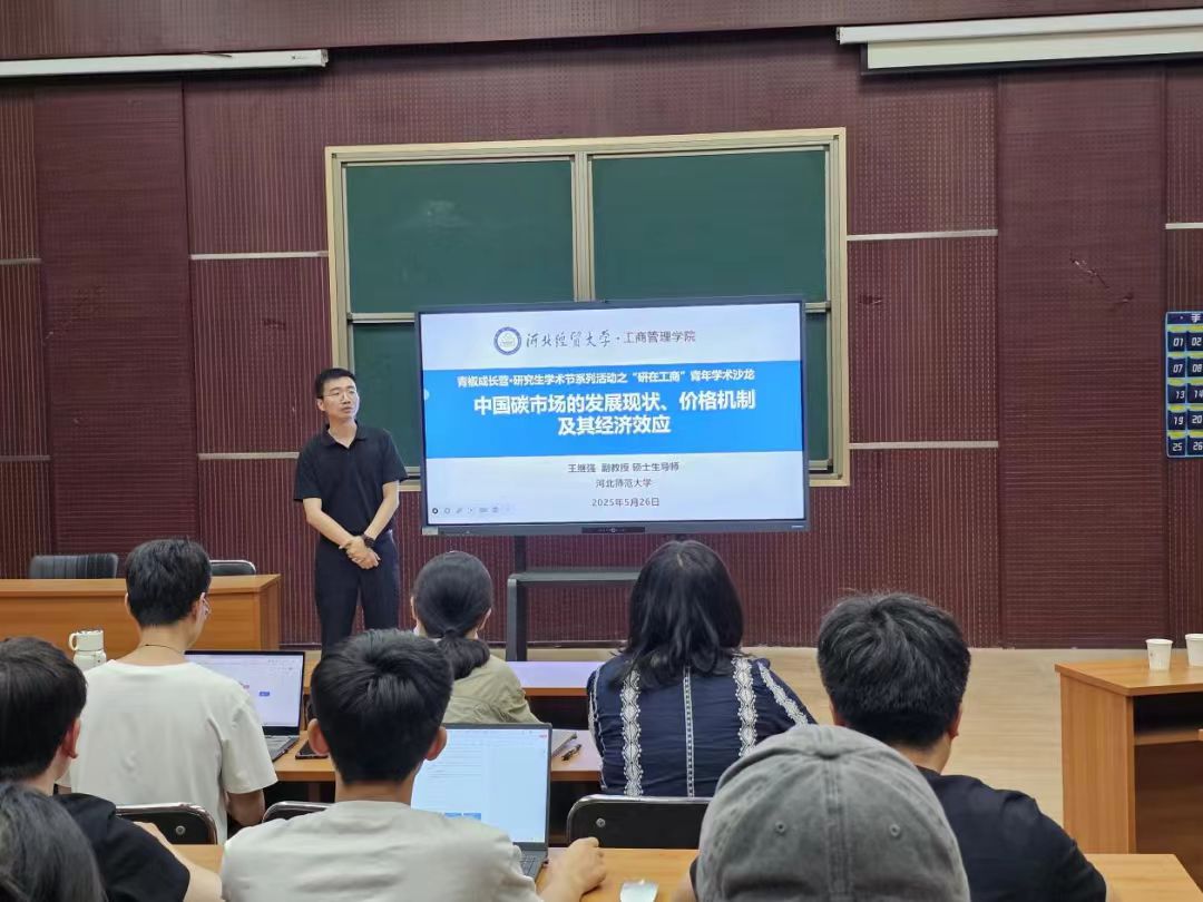 5月26日,青椒成长营·研究生学术节系列活动之“研在工商”科研学术讲座于MBA一教室举行,由河北师范大学商学院王继强副教授作题为“中国碳市场的发展现状、价格机制及其经济效应”的学术报告。会议由威廉官网中国官方网站院长李桂荣教授主持,学院青年博士教师及全体学术型研究生参加。