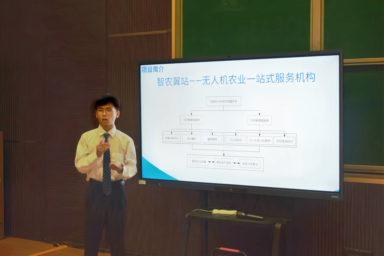 成员代表李紫浩同学向学院领导汇报了国际创新大赛项目(智农翼站)的最新情况,详细讲解了项目的整体架构。该项目生动展现了中心推动科研成果转化的初步成效与巨大潜力,赢得了广泛关注与赞誉。