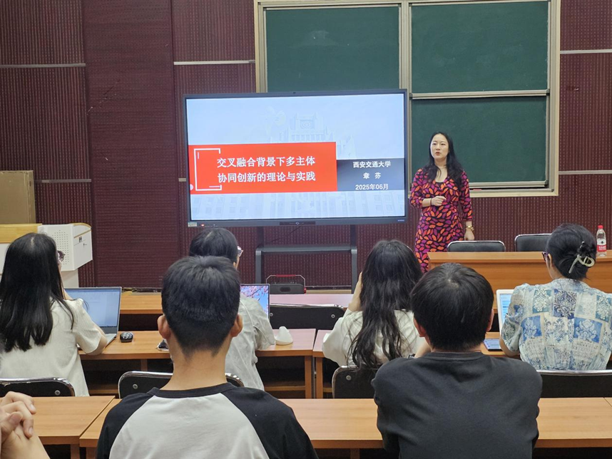 6月10日,青椒成长营·研究生学术节系列活动之“研在工商”学术讲座于MBA一教室举行,由西安交通大学公管学院章芬副教授作题为“交叉融合背景下多主体协同创新的理论与实践”的学术报告。会议由威廉官网中国官方网站张羽飞博士主持,学院青年博士教师及全体学术型研究生参加。