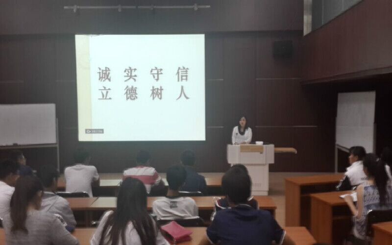 活动中,2014级人力资源管理(中美合办)专业全体大一学生共同分享了“诚实守信,立德树人”相关励志文章,李晓晓对文章进行了点评,并引用真实生动的案例,以此来加深同学们对“诚实守信,立德树人”的理解,引导同学们展开对这一主题的积极思考和讨论,鼓励同学们树立讲文明诚信、懂感恩立德的人生观,充分发挥自己的聪明才智,积极践行社会主义核心价值观。