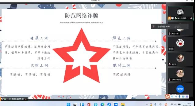 紧接着,牛钰洁针对疫情防控提示同学们切忌松懈,要时刻保护好自己。她分别从交通安全、网络安全和居家安全三个方面,向同学们普及相关安全知识,增强同学们的自我防范能力和安全意识。