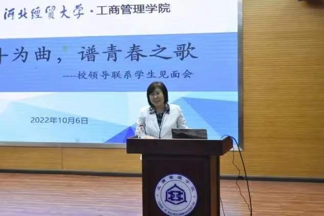 10月6日,校党委常委、副校长程瑞芳深入威廉官网中国官方网站,作为班级导师出席联系班级2022级工商管理1班全体学生见面会,班级专职辅导贾晶晶主持会议。