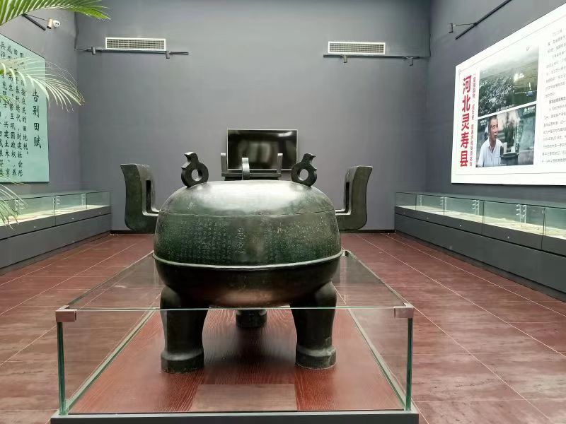 现如今,家乡的青铜铸造并没有只停留在中山古国,而是传承下来,记录着历史的辉煌、时代的发展。灵寿县青铜文化传人王三妮推陈出新:2006年铸造的告别田赋鼎,记录了广大老百姓对国家免除农业税的喜悦之情,轰动全国,现在此鼎收藏于中国农业博物馆;2009年,王三妮利用古老工艺和新工艺相结合的方法,铸出了重两吨,高两米的中华尊2010年又铸成五千年文明尊。由此可见,灵寿县青铜文化博物馆中收录的不仅仅是青铜器具,还是历史的印记。