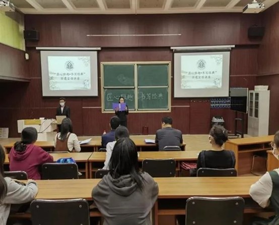 栗老师为同学们讲述中国书法的发展历程。传承千年的书法艺术,以特有的造型符号和笔墨韵律,融入中国人对自然、社会、生命的思考,表现出我们特有的思维方式、人格精神与性情志趣。栗老师的讲述通俗易懂,使得现场同学产生强烈的共鸣,大家纷纷表示一定要继承和发扬中华优秀传统文化艺术,让书法融入生活、融入社会。