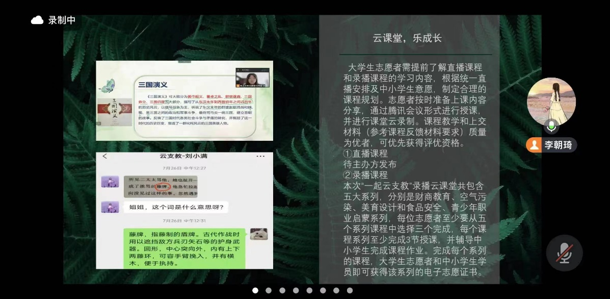 为进一步宣传贯彻落实党的二十大精神和习近平总书记关于青年工作的重要论述,引领广大青年学子立志做有理想、敢担当、能吃苦、肯奋斗的新时代好青年,为推进中华民族伟大复兴贡献青春力量,7月10日,河北经贸大学威廉官网中国官方网站于线上召开“一起云支教·强国有我,奋进中国式现代化”第七季云支教动员大会。本次会议由团委志愿服务中心李朝琦主讲,55名大学生志愿者参加。