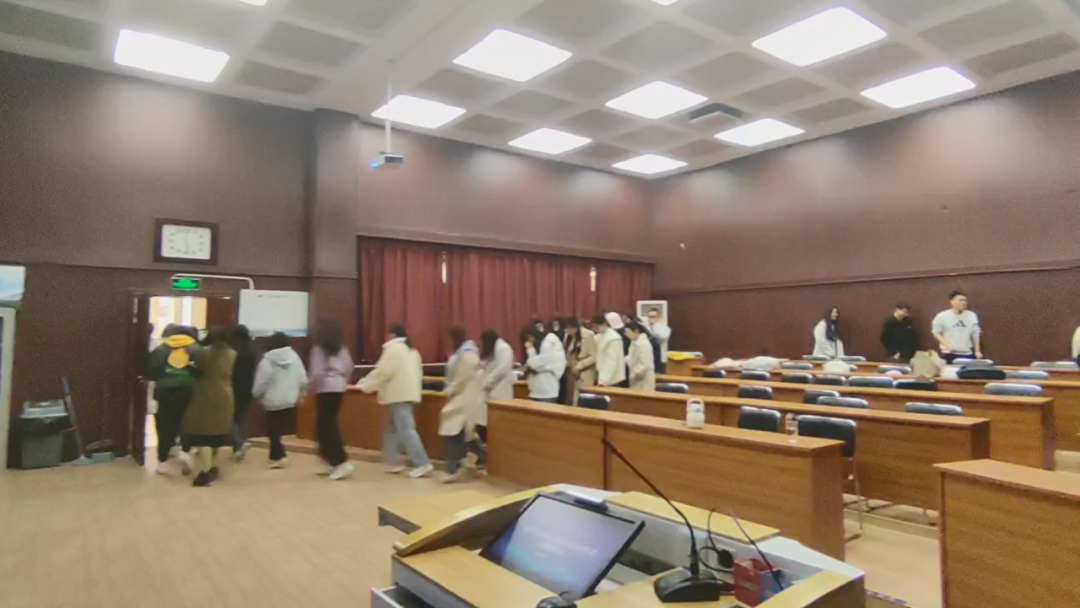 紧接着,逃生演练活动正式开始。第一次演练模拟了无预警的火灾情景,一名同学突然发出警报信号,其他同学在听到警报后迅速从教室的前后门撤离,赶往室外集合地点。全体同学在紧张而有序的氛围中完成了撤离,用时38秒。演练结束后,李建林对演练过程进行了详细复盘,指出逃生过程中出现的问题,并讨论了如何进一步提高逃生效率。紧接着进行第二次逃生演练,此次演练在第一次的基础上增加了伤员角色,考验同学们在复杂情况下的应变能力。第二次仍然模拟无预警的火灾情景,用时缩短至27秒,比第一次提高了11秒。通过两次紧张有序的演练,同学们深刻体会到了消防安全教育的重要性,并对如何在火灾等紧急情况下保护自己和他人有了更为清晰的认识。