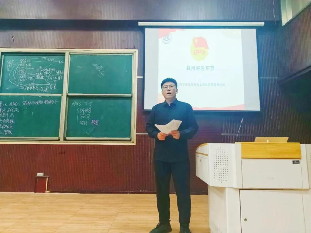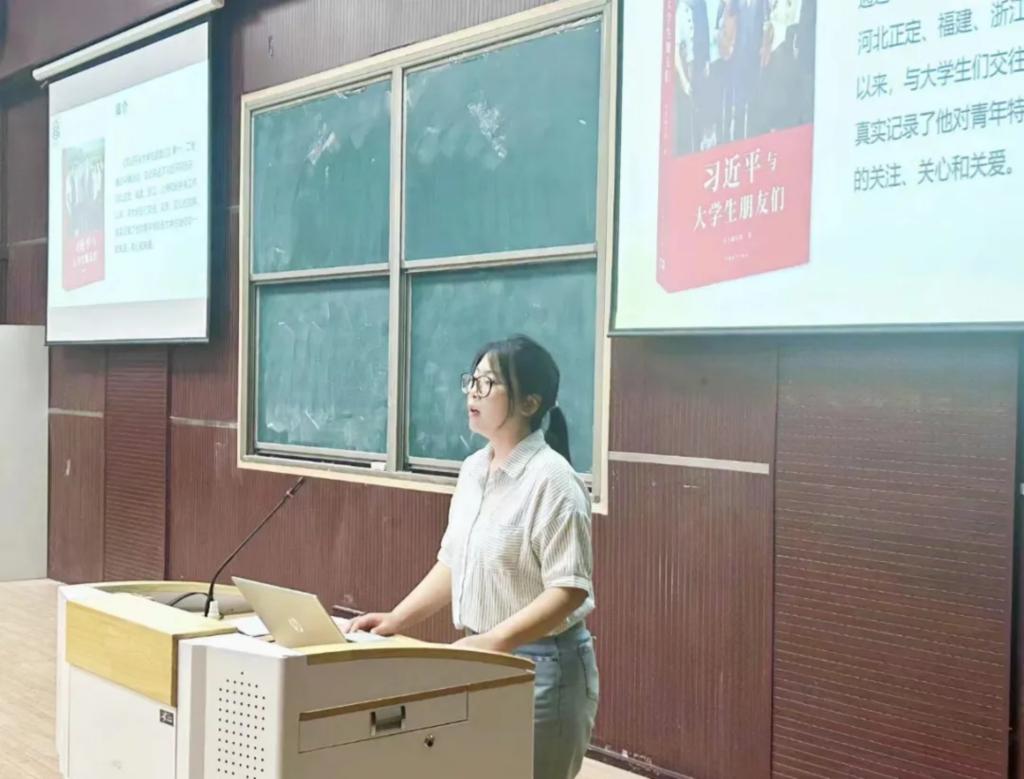紧接着,程艺晗以“读经典,树新风”为主题,向同学们介绍了《习近平与大学生朋友们》一书。书中运用访谈的方式讲述了习近平总书记从地方到中央工作期间与不同大学生群体交往交流的故事。书中的故事鼓励同学们坚定理想信念,志存高远,脚踏实地,成为经得起考验、抓得住机遇的有志青年。她强调在学知识长本领的问题上,要下一番功夫,心无旁骛,克服浮躁之气,静下来多读经典,努力从会读书的人变成会创作的人,争做自主创新的“排头兵”。最后,同学们围绕在读红色书籍展开讨论,并通过小组代表发言的形式讲述自身对经典书籍的理解和感悟。