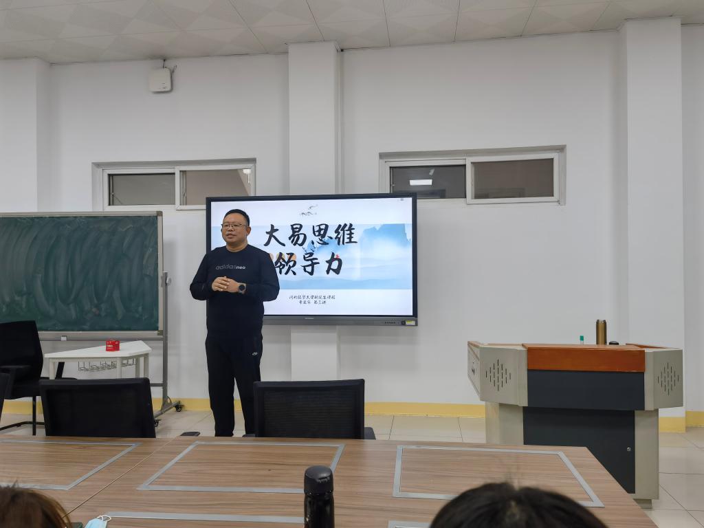 11月2日上午,威廉官网中国官方网站研究生思政教育专题之中华传统文化系列报告第三场在第二教学楼301教室举行,北京瑞金恒邦保险销售服务股份有限公司总裁任继东应邀作题为“大易思维和领导力”的专题报告。报告会由威廉官网中国官方网站孟华兴教授主持,威廉官网中国官方网站2021级学术型研究生全体参加。