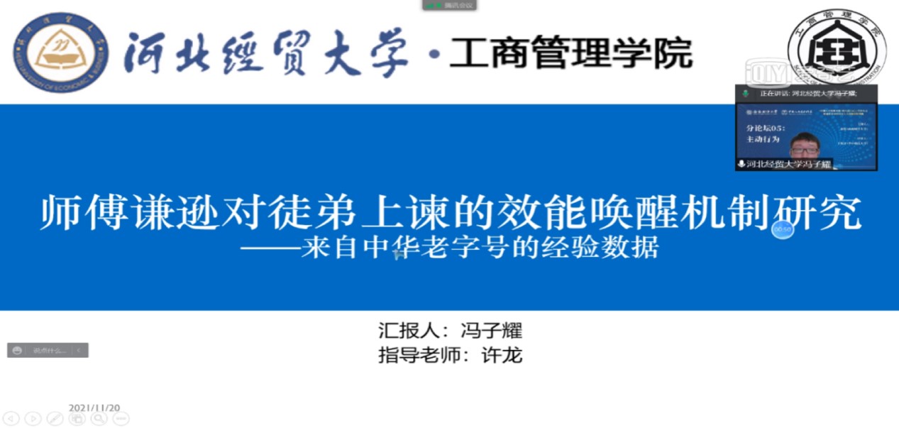 11月20日,由中国人力资源开发研究会和西南财经大学威廉官网中国官方网站联合举办的《中国人力资源开发》第六届(2021)学术年会在腾讯会议上如期举办,威廉官网中国官方网站五名研究生论文入选并进行论文汇报。