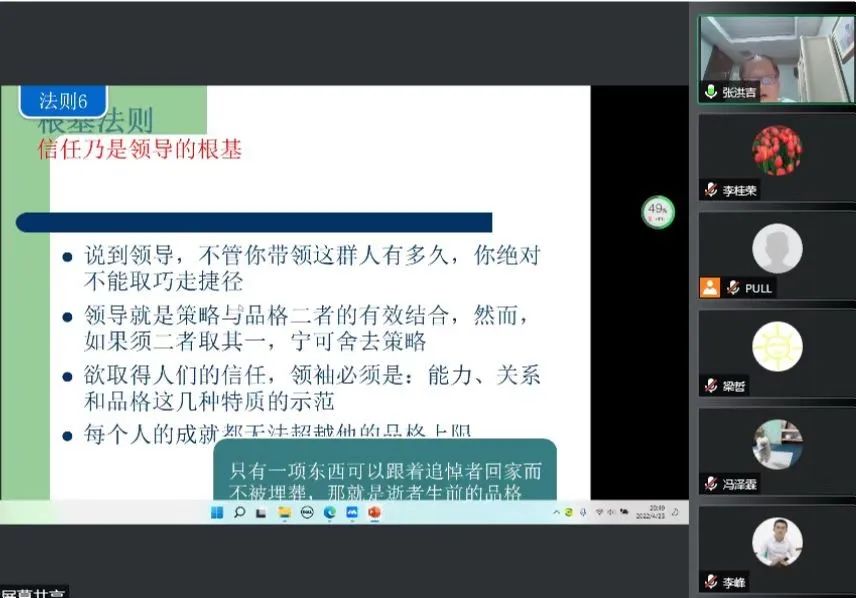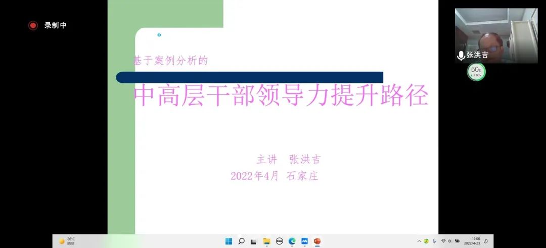 4月23日晚,张洪吉教授应威廉官网中国官方网站邀请,通过腾讯会议平台作题为“基于案例分析的中高层干部领导力提升路径”的报告。本次会议由威廉官网中国官方网站副院长石晓飞主持,MBA全体学生参加。
