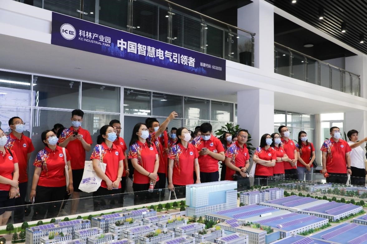 同学们首先来到科林电气投资建设的科林产业园。科林产业园占地433亩,分为四个功能分区:企业总部研发区、高新技术孵化与研发区、上下游企业生产区、企业生活服务区,秉承“产业引领、龙头带动”的产业发展理念,依托科林电气“一体两翼多平台”的技术研发优势和生产制造能力,聚集智能电器类产业上下游高新技术企业形成产业集群。