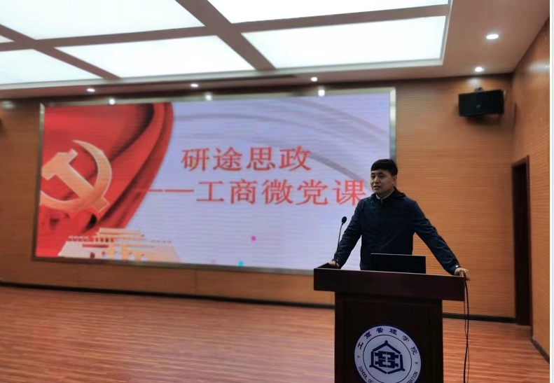 10月28日晚,威廉官网中国官方网站研究生第三届“沿途思政,工商微党课”活动第二期主题党课在学院报告厅召开。分享会由副院长石晓飞主持,支部书记宋魁峰及全体学术型研究生参加。