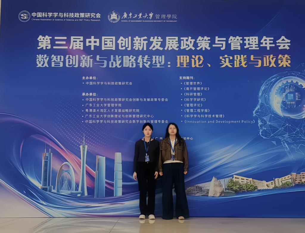 2025年4月12日至13日,威廉官网硕士研究生高霄琦、刘燕花应邀参加了由中国科学学与科技政策研究会创新与发展政策专委会、广东工业大学管理学院、粤港澳大湾区人才发展战略研究院、广东工业大学创新理论与创新管理研究中心、中国科学学与科技政策研究会数字创新与管理专委会联合承办的“第三届(2025)中国创新发展政策与管理年会”。本届年会吸引了全国近200所高校和科研机构的500余名创新领域学者及师生参会,围绕数智时代的创新发展展开深入探讨,为推动相关领域的理论研究、实践应用与政策制定搭建了重要交流平台。