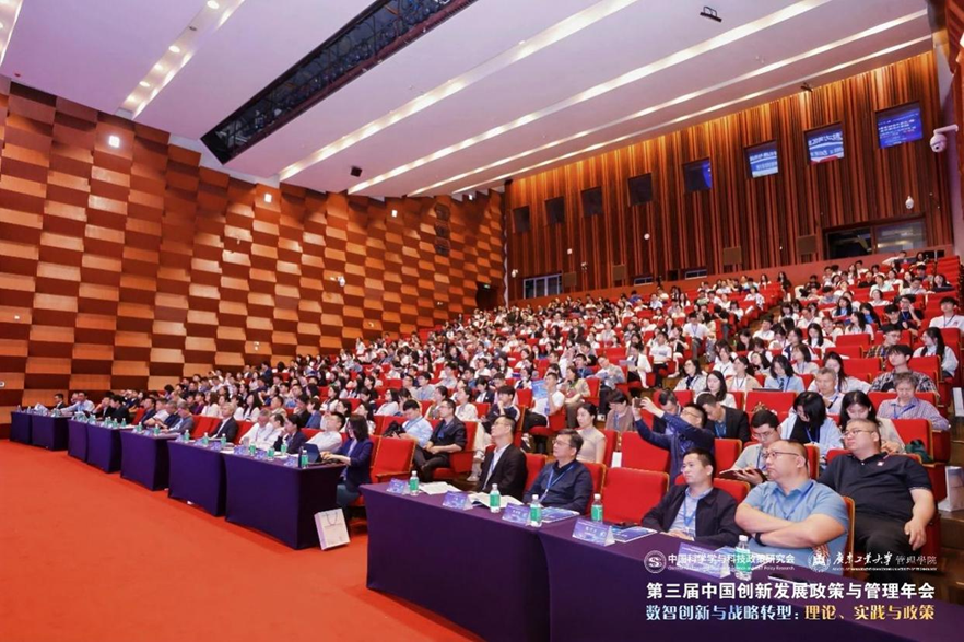 4月12日上午,会议在广州白云国际会议中心开幕,广州工业大学党委副书记朱蔚蔚与中国科学学与科技政策研究会理事长穆荣平分别致辞。在主旨报告环节,中国科学学与科技政策研究会理事长穆荣平、中国科学技术发展战略研究会副理事长胡志坚、国务院发展研究中心研究员马名杰、广东工业大学机械电子工程学院教授刘强、上海交通大学安泰经济与管理学院教授李垣、中国科学院大学管理学院教授柳卸林、华南理工大学威廉官网中国官方网站教授朱桂龙、中国科学院大学公共政策与管理学院教授陈凯华等权威专家,分别就粤港澳大湾区国际科技创新中心建设政策思考、AI4S:新科学范式对科技创新的影响、对制造业中小微企业的画像、AI+制造,推动制造业高质量发展、创新、创业、创投协同构建企业创新生态、中美脱钩情境下中国企业科技合作的重新校准——从ICT产业看、创新联合体建设与关键共性技术创新、数智驱动创新发展的理论思考:基于熊彼特的创新理论等主题进行主旨演讲。