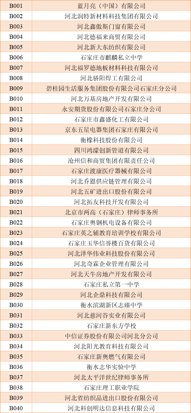 展位号B001-B040