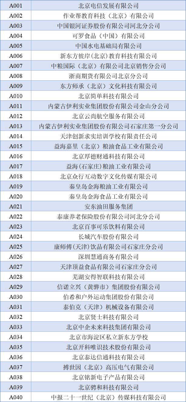展位号A001-A040