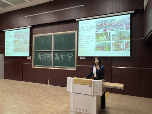 活动伊始,树高中学招聘宣讲人向同学们简要介绍学校的优美环境、先进设施和标准化管理等内容,并以播放本学校宣传PPT的形式,促使学生们更深入了解学校。然后,分别从发展前景、教师待遇、招聘岗位等方面出发,进行全方位多角度地介绍,帮助学校和学生之间进行双向选择。最后,说明本学校的面试流程及简历的投递方式,并欢迎同学们积极踊跃报名。