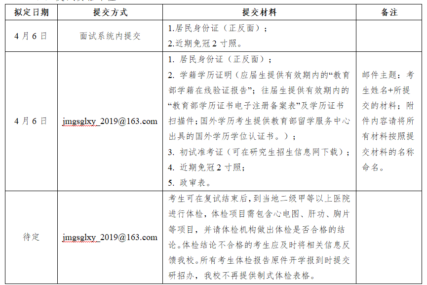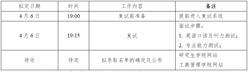 进入复试考生,需按时参加面试。缺考者取消复试录取资格。具体环节及规定如下: