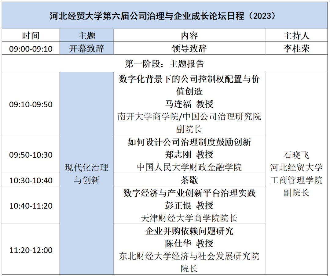 为全面贯彻党的二十大精神,进一步提高公司治理水平,共建可持续发展的企业生态,值此河北经贸大学建校70周年之际,于2023年10月22日举办河北经贸大学第六届公司治理与企业成长论坛。将邀请数位专家学者与企业家莅会,与广大同仁共聚河北经贸大学,开展公司治理与企业成长高端对话,共谋公司治理与企业成长发展。现将“河北经贸大学第六届公司治理与企业成长论坛”有关事项通知如下: