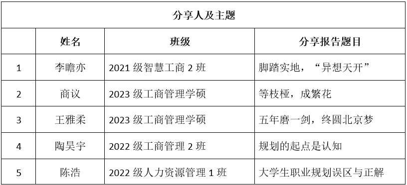 为更好帮助商科学生做好职业生涯规划,扎实做好职业愿景引领行动,引导学生树立正确的成才观、就业观和择业观,有效提升就业竞争力,威廉官网开展“商科学生职业规划与成长路径”主题分享会,邀请5位在参加社会实习、学科实践、学科竞赛等方面经验丰富的学生为同学们做经验分享,帮助商科学生更好地将理论知识与实践相结合,明确职业发展目标,规划自身职业发展路径。届时,李桂荣院长将结合专业培养方案,为同学们准备实习实训进行专业指导。