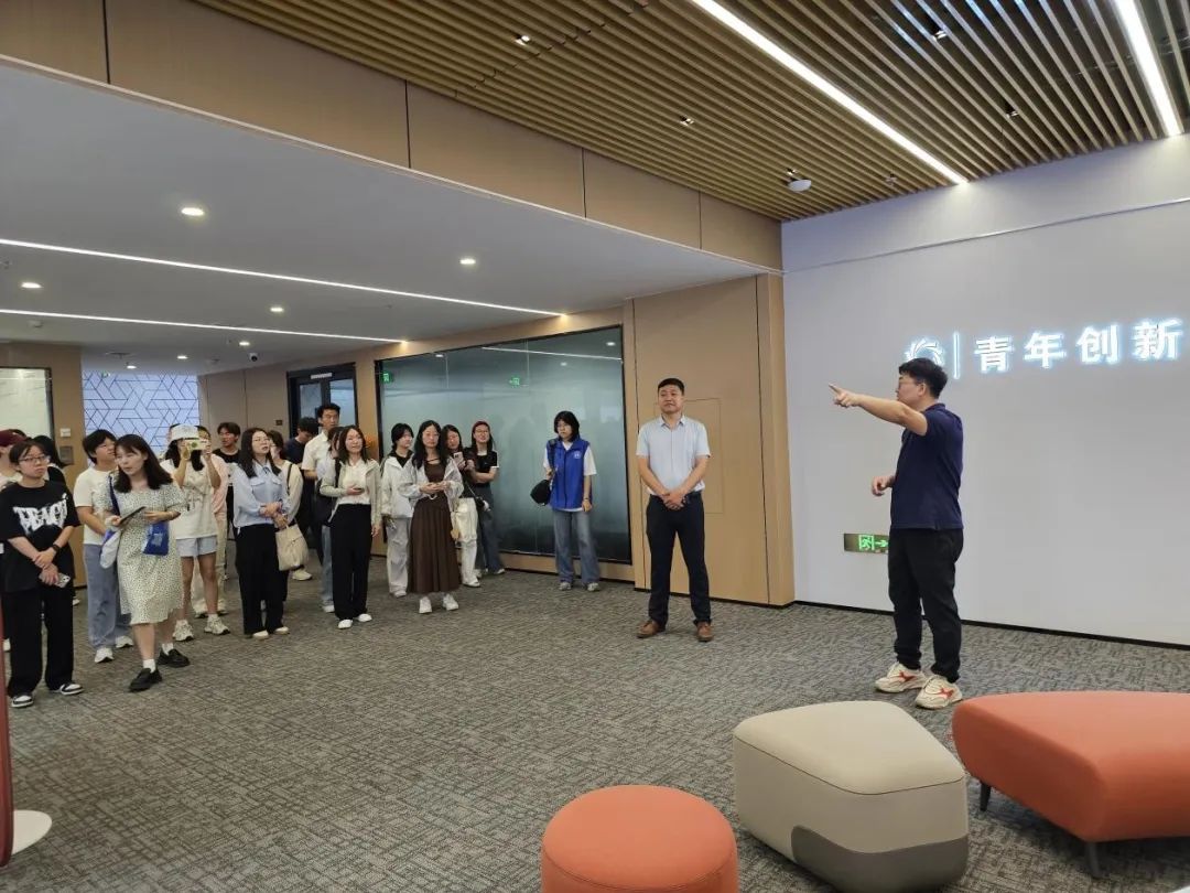 调研过程中,石晓飞副院长一行系统考察了青年创新中心的整体运营模式、特色服务项目及入驻企业发展状况。团队实地参观了包括创业孵化器、共享办公区、多功能会议室及休闲交流区在内的各类功能空间,并与品汇广场青年创新中心总经理高福川先生进行座谈,就中心的功能定位、政策支持体系、市场分析服务、校企对接机制及未来发展规划等议题进行了深入交流。