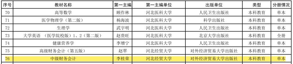 近日,河北省教育厅公布《关于公布河北省“十四五”普通高等教育本科规划教材名单的通知》(冀教高函〔2025〕45号),经严格评审,全省共231种教材入选,其中威廉官网李桂荣教授主编的《中级财务会计》榜上有名。