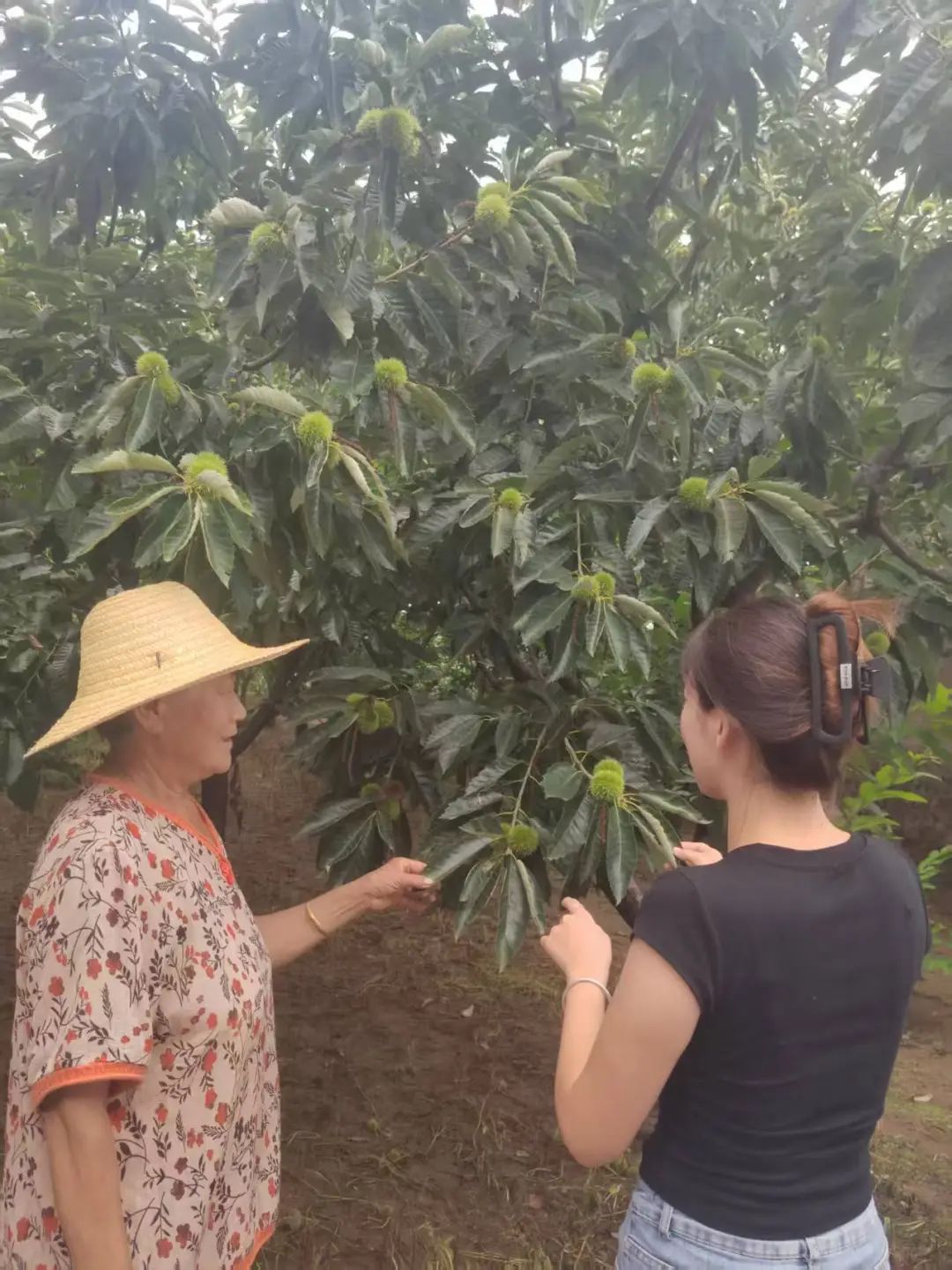 在罗家屯镇史家峪村,我跟随栗农刘奶奶走进栗园,她向我们讲述了板栗产业中春日剪枝疏果、夏日除虫防病、秋日采收人手紧缺及鲜果集中上市价格低谷等艰辛,这让我们深切体会到,正是这些像刘奶奶一样的栗农,用日复一日在栗园里的辛勤劳作才撑起了迁西板栗产业的一片天。