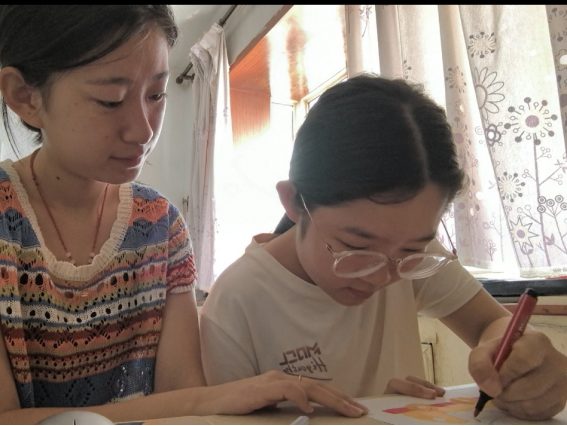 此次“科创未来,青春行动”云支教活动为我打开了一扇全新的窗户,我与宝方在未来绘画坊共同绘制Hello Kitty,开启了创意的碰撞与心灵的贴近。阳光透过棱镜玻璃在画纸上投下光斑,空气中飘着水彩笔的墨水香。我支起画板,旁边放着一筒带星星贴纸的彩色水彩笔。宝方抱着小兔子玩偶走来,双马尾随动作轻晃,看到水彩笔后拿起一支黄色的,笔杆被她捏出浅印。