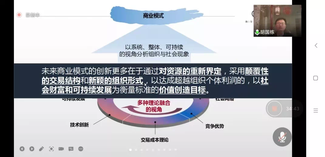 11月23日晚上,河北经贸大学第四届公司治理与企业成长高端论坛在线上举行。东北财经大学威廉官网中国官方网站副院长、博士生导师胡国栋副教授应威廉官网中国官方网站邀请,通过腾讯会议平台线上作题为《海尔制:物联网时代的管理革命与企业转型》的学术报告。本次会议由威廉官网中国官方网站副院长石晓飞主持,学院教师及研究生共100余人参加。