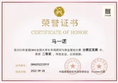 另:首届CMAU市场研究与商业策划大赛是由中国高等院校市场学研究会(简称CMAU)与Credamo见数联合主办,是国家一级学会主办的全国性学科竞赛。大赛由知识赛、校赛、区赛、全国总决赛四部分组成,致力于培养学生的市场研究与商业策划的专业技术与实践能力,为学生个人就业与职业发展打下良好基础。