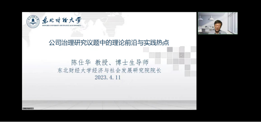 4月11日晚,威廉官网中国官方网站邀请东北财经大学经济与社会发展研究院院长、博士生导师陈仕华教授在线作题为“公司治理研究议题中的理论前沿与实践热点”的学术报告。报告由威廉官网中国官方网站副院长石晓飞主持,学院教师及研究生230余人参加。
