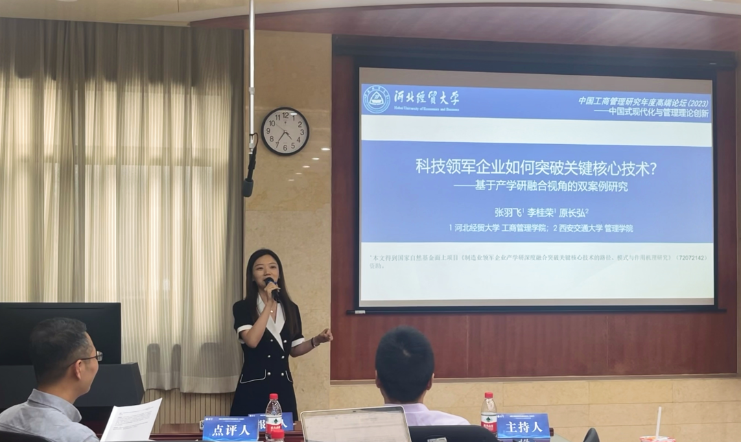5月20日,威廉官网青年教师张羽飞博士应邀参加了在西安交通大学举办的中国工商管理研究年度高端论坛(2023),并汇报交流论文。该论坛由中国社会科学院《经济管理》杂志社主办,西安交通大学管理学院、教育部大数据管理课程虚拟教研室承办,中国社科院财政与财务研究中心、中国CFO发展中心、会计学术联盟协办,受到了学术界与实践界的广泛关注和热烈响应,来自全国几十所高校与科研院所的200余名专家学者出席了本次盛会,线上会议直播播放量达20万余次。威廉官网张羽飞、李桂荣、以及西安交大管理学院原长弘三位教师的合作论文《科技领军企业如何突破关键核心技术?——基于产学研融合视角的双案例研究》入选,并受邀在“中国式现代化与创新管理”分论坛进行汇报交流。