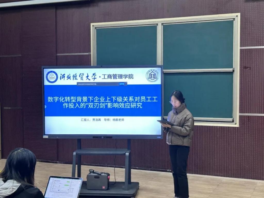 汇报人贾浩苒在“数字化转型背景下企业上下级关系对员工工作投入的‘双刃剑’影响效应研究”中,基于资源保存理论和工作要求-资源模型,探讨了上下级关系如何通过心理可得性和角色超载影响员工工作投入。丰富了关于上下级关系对员工工作态度影响的理论框架,为理解数字化转型背景下员工行为提供了新的视角。