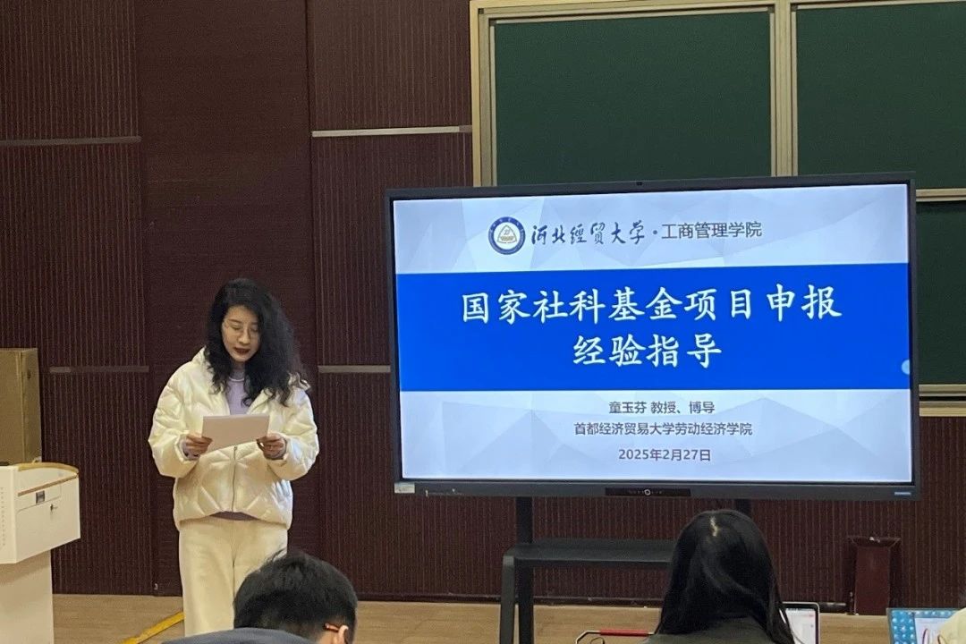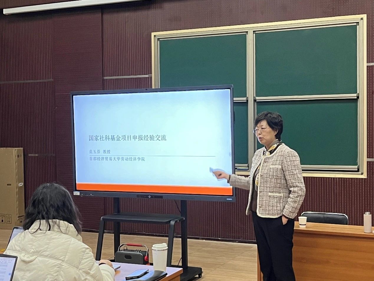 2月27日,威廉官网中国官方网站邀请首都经济贸易大学劳动经济学院童玉芬教授于MBA一教室作题为“国家社科基金项目申报经验指导”的专题报告。报告由威廉官网中国官方网站副院长封雪韵主持,学院青年博士教师、研究生导师参加会议。