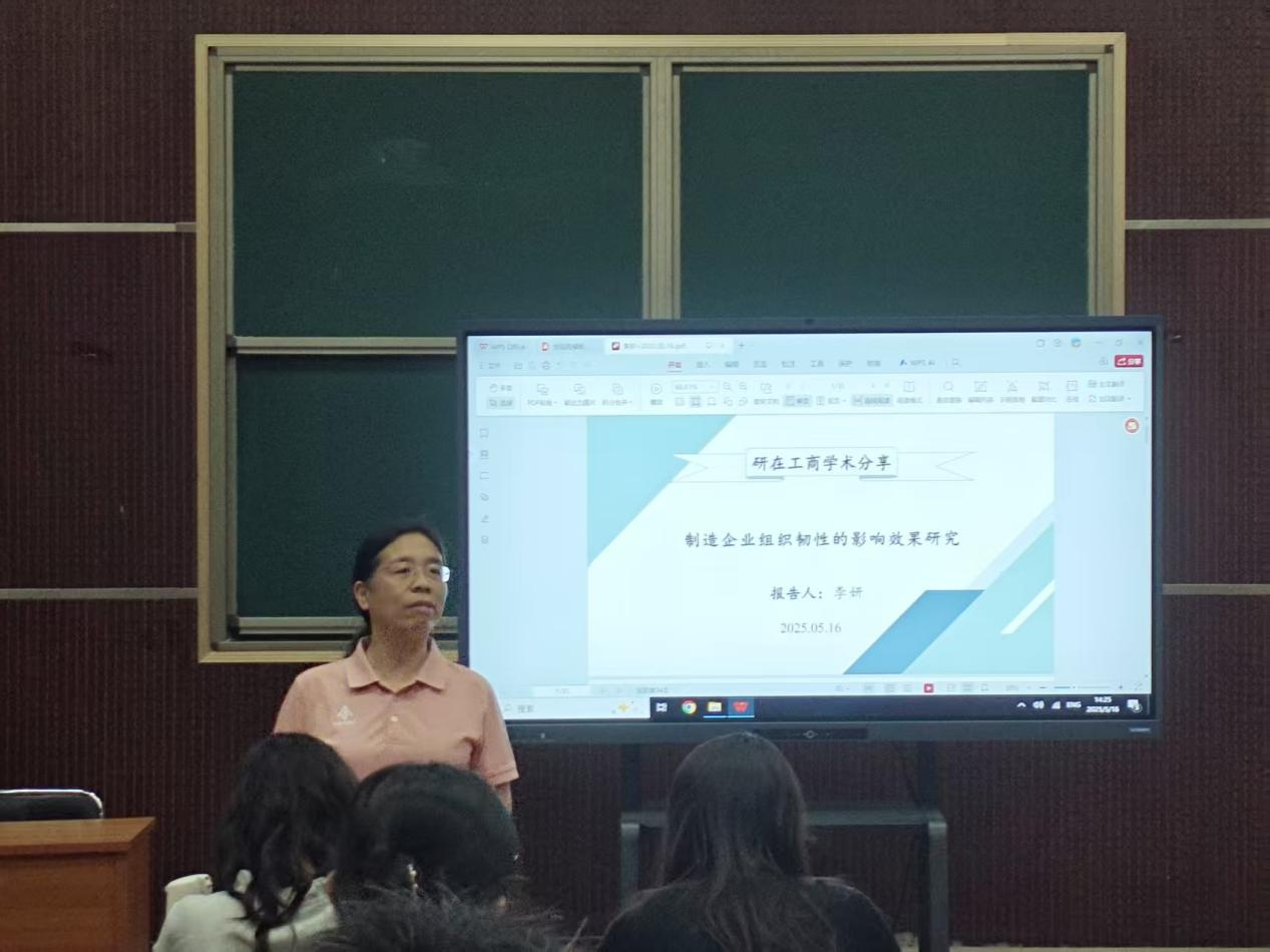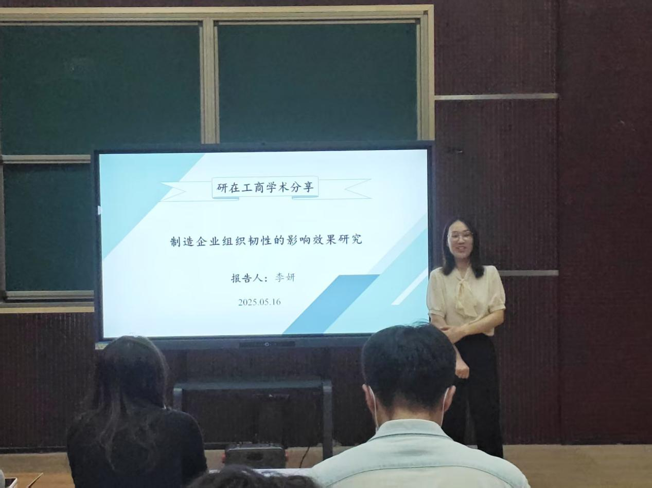 5月16日,研究生学术节系列活动之第四十一期“研在工商”青年学术沙龙于MBA一教室举行,由河北经贸大学威廉官网中国官方网站李妍博士作题为“制造企业组织韧性的影响效果研究”的学术报告。本次沙龙由威廉官网中国官方网站院长李桂荣教授主持,学院青年博士教师及全体学术型研究生参加。
