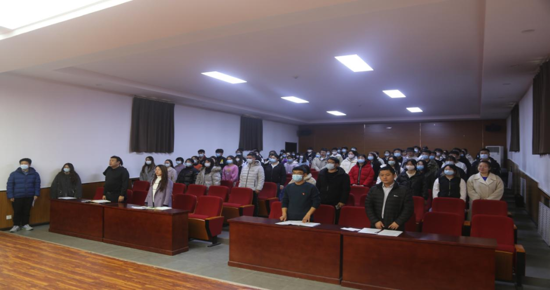 会场于收齐选票后统一计票宣布投票结果,全票通过了靳慧珑、赵鑫龙等入党积极分子发展为预备党员,王皓、董子慷等预备党员转为正式党员。根据党员发展程序,需报上级党委审批,并报组织部备案后生效。此后,全体转预备的党员起立,目视党旗,右拳紧握,在研究生导师张佳美的领誓下,进行入党宣誓。