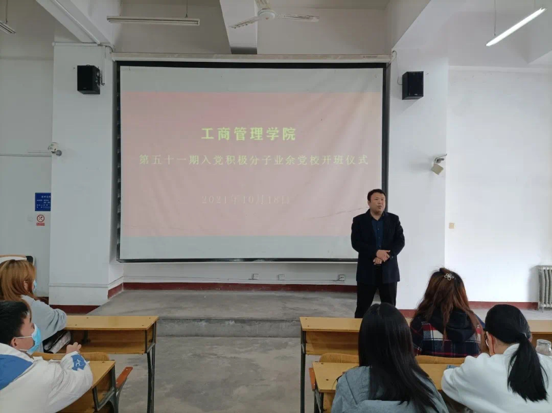 10月18日中午,威廉官网中国官方网站第五十一期入党积极分子培训班在第五教学楼四教室举行开班仪式。学院党委副书记范伟以及辅导员宋欣、范家明老师参加。