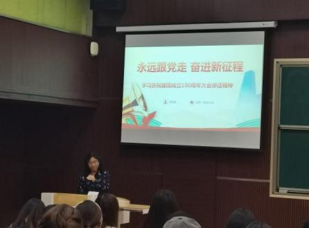 活动伊始,李桂荣与同学们进行了有关团史的互动问答,活跃现场气氛,同时通过讲解共青团成立的历史,引出本次课程主题。随后,李桂荣为同学们讲述了习近平总书记在建团100周年大会上发表的重要讲话内容,并详细介绍了其精神内核。她表示,青年作为国家的未来,要坚守共青团成立的初心与使命,积极响应习近平总书记在大会中对青年提出的希望,要紧密团结在党中央周围,为实现中华民族的伟大复兴贡献青春力量。
