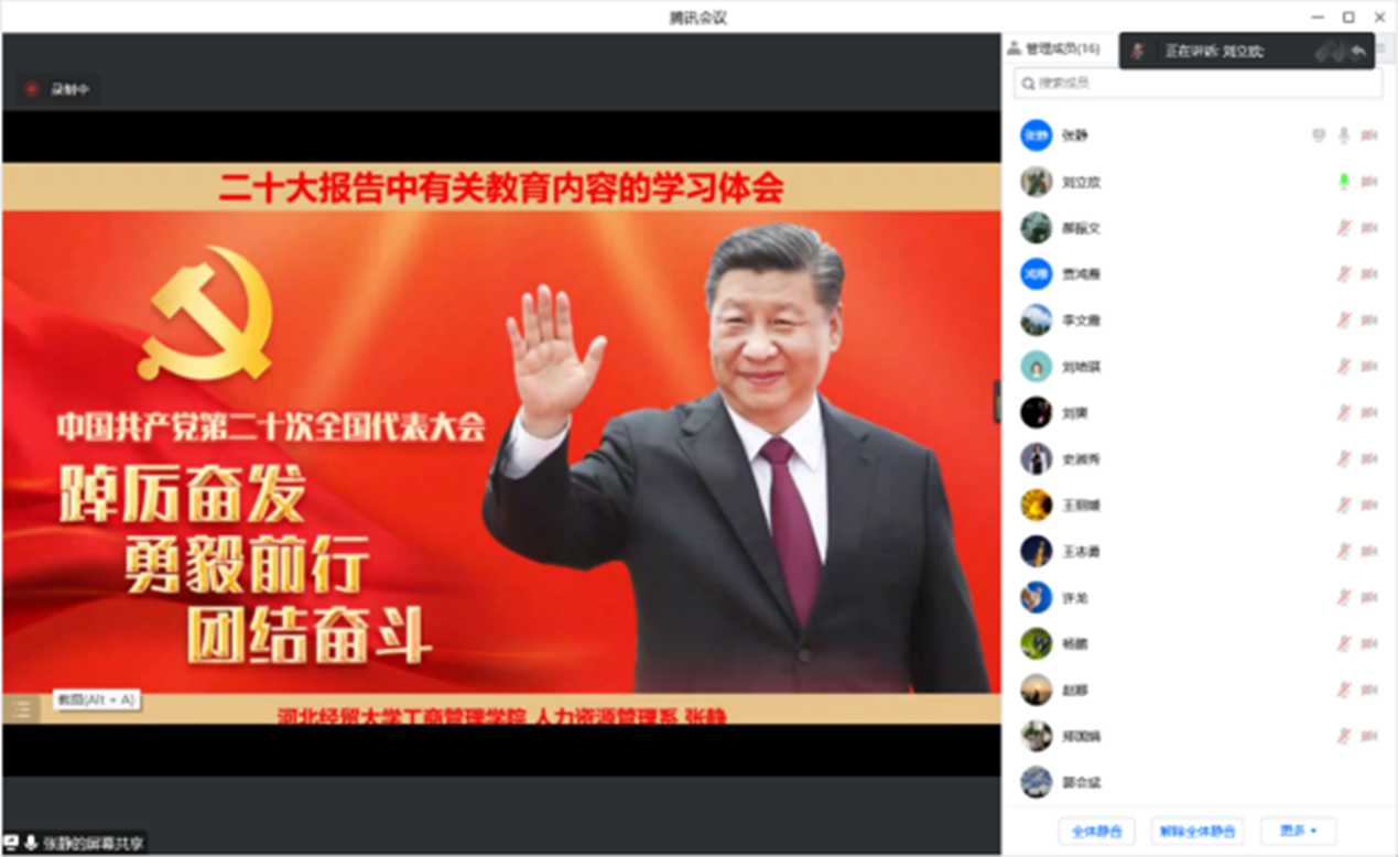 10月24日,威廉官网中国官方网站人力资源管理教工党支部通过线上方式,召开主题为“学习二十大精神,做好新时代教育人”的支部党员大会,特别邀请郭会斌老师为嘉宾。支部教师党员就大会精神纷纷发表自己的观点和看法。
