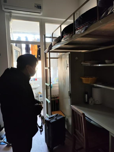学生离校后,辅导员老师深入宿舍清查,确保落实“三清两关一杜绝”工作。他们仔细检查每一间宿舍是否切断电源、是否关好门窗,对个别插座电源未切断的情况,发现后及时将电源切断。本次寒假前宿舍安全检查力求排除一切安全隐患,确保学生的人身财产安全以及宿舍安全,维护校园安全稳定,为学生安全稳定保驾护航。