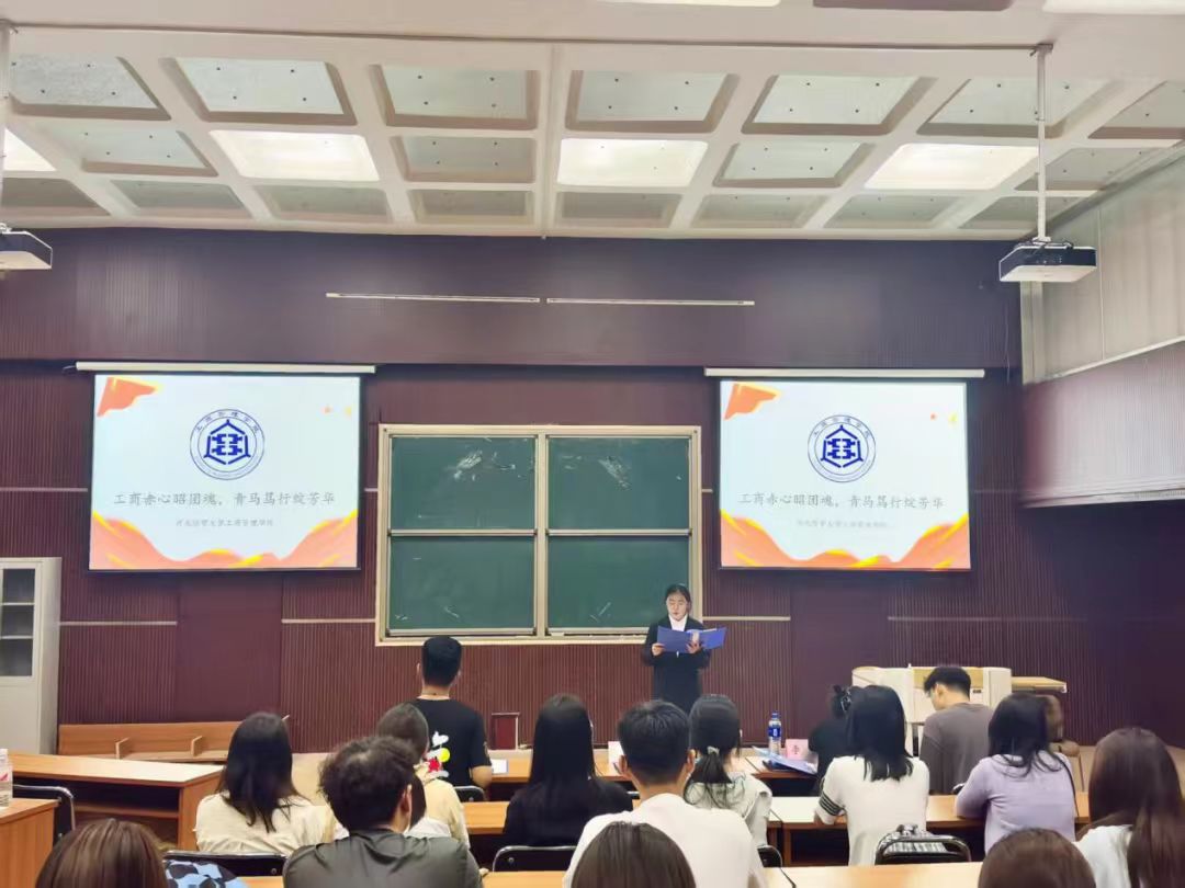 会议伊始,王晓东发表讲话。他首先阐明并解读了此次活动的目的及“工商赤心昭团魂,青马笃行绽芳华”的深刻含义,强调了其在学院团组织建设过程中的重要意义。同时,他对同学们提出了三点要求:一是坚定理想信念,筑牢信仰之基;二是提升专业素养,积极参与实践;三是勇于担当奉献,展现责任担当。他鼓励同学们矢志不渝地追求目标,争当有理想、敢担当、能吃苦、肯奋斗的新时代好青年。